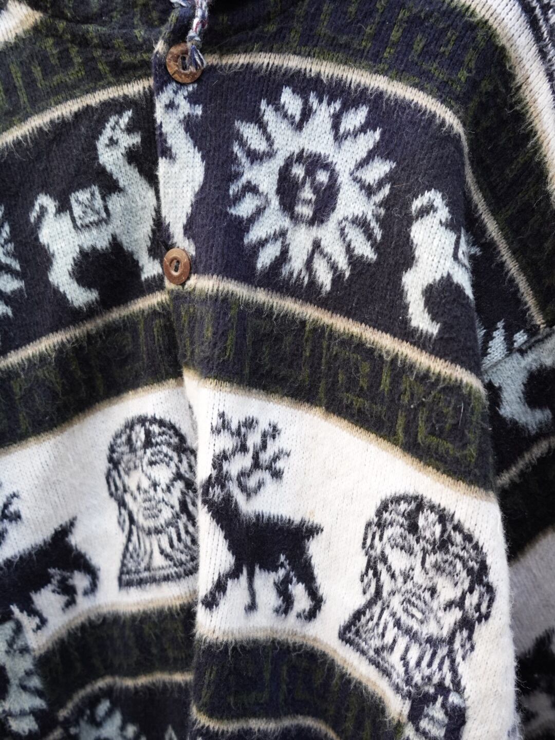 こちらは90年代ごろのエクアドル製。ベージュよりの白との配色とモッタリとしたレトロな生地感が良いバランス。